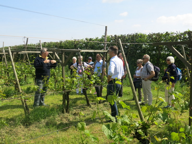 De reis ging verder naar Beemster waar we een wijnboerderij bezochten. De wijnboer vertelde met passie over zijn bedrijf. Ook hier kregen we smaakproeven van witte en rode wijn (behalve Gert en ik, die moesten rijden). Het viel allemaal zeer in smaak.
