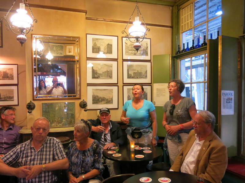Vervolgens door naar proeflokaal „In de Olofspoort“ gevestigd in een pand uit 1619. Hier hebben we een likeurtje geproefd die door de eigenaresse persoonlijk voor iedere persoon was uitgekozen. Daar vertelde zij bij elke persoon ook een persoonlijk verhaal bij. Dat was een hele aparte belevenis, wat bij sommigen ook tot de nodige emotie leidde. De eigenaresse en haar assistente hebben ook voor ons gezongen, waarbij een aantal leden van Ørskogkoret (die ook aanwezig waren en tevens lid zijn van de Rotary – vijf personen) ook een lied inzetten.