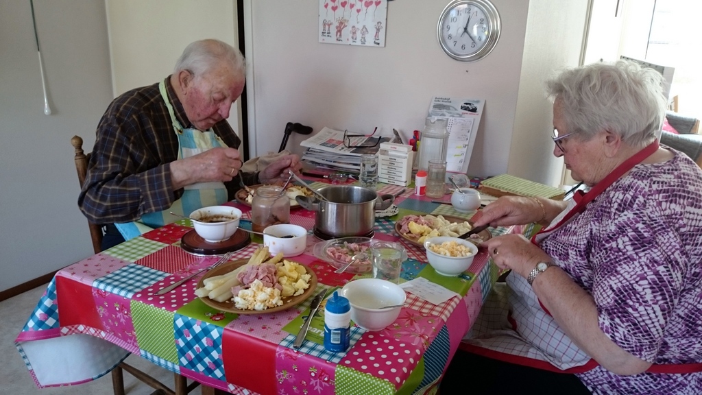 Mama vindt het altijd heerlijk als ik kook, dus dat heb ik bijna alle dagen gedaan. En het is weer aspergetijd. Dat moest natuurlijk op de traditionele manier gegeten worden, met gekookte aardappelen, ei en ham. Zo lekker!