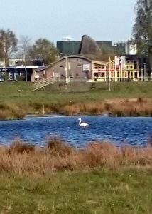 Een flamingo? Hoe komt die nu hier? Ik verbind deze vogels altijd met warmere landen zoals Afrika. Maar mijn zus Jennie kon vertellen dat deze misschien vanuit Duitsland komt, waar in het Zwillbrocker Venn een kolonie flamingo’s te vinden is. Grappig!
