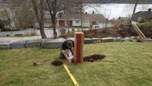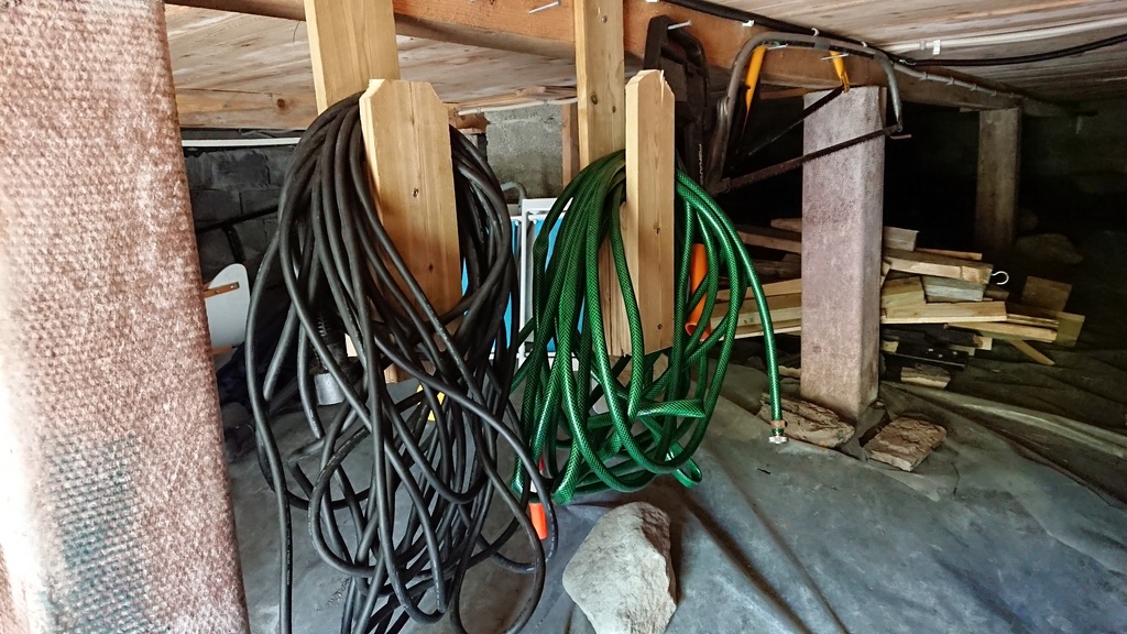 Voor de waterslang en electrische kabel maakt hij een handig ophangsysteem.