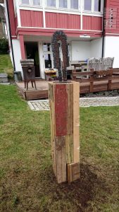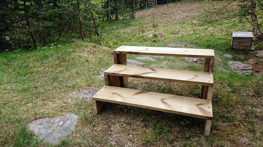 Maar er is nog meer hout over. Daar maakt hij een trapje van.