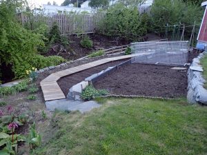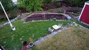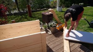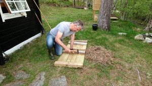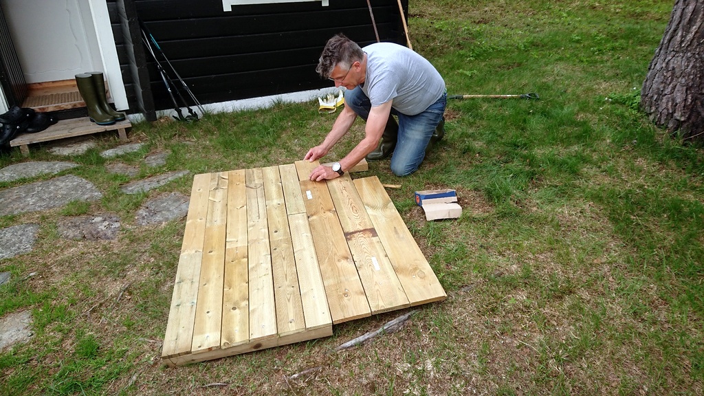 Van resthout heeft Gert een vlonder gemaakt voor bij de ingang van de kelder. Daarvoor moest hij eerst nog wel zand weghalen zodat de vlonder daar in zou passen.