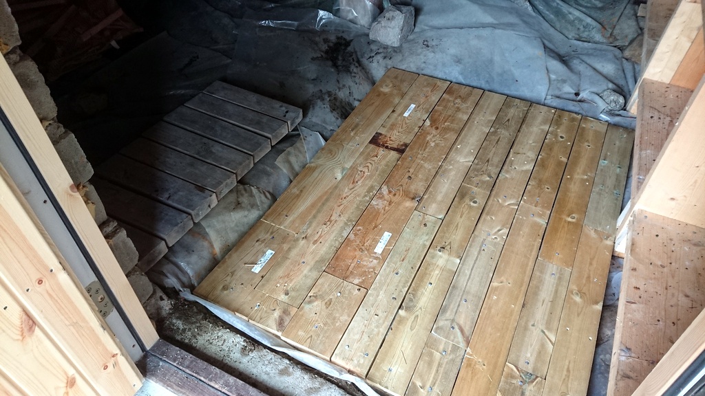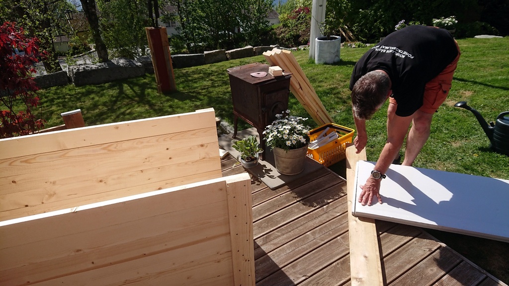 Maar hij heeft er eentje gemaakt waar hij niet tevreden mee: de vlonder was te klein. Wel ja, dan maakt hij er maar een stuk bij aan.