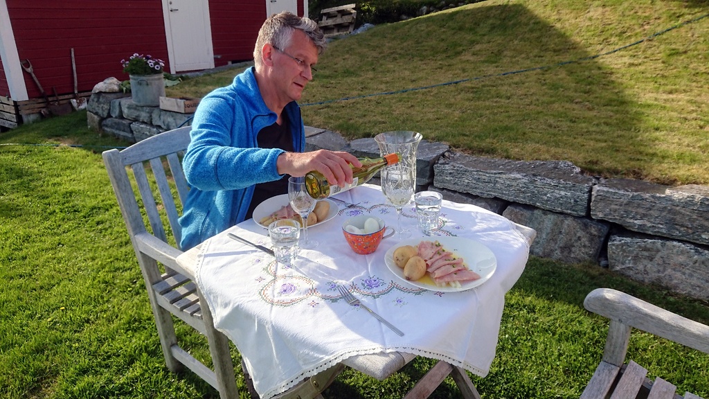 We „komen om“ in de vele vrije dagen die we in mei hebben. Maar daar zijn we niet rouwig om. We benutten de dagen van pinksteren om die in Jønsbu door te brengen. Zaterdag nadat we Stolt Mat afgesloten hebben pakken we de spullen in de auto en zullen we twee nachten in ons hutje in de bergen doorbrengen. Heerlijk vooruitzicht. Wat ook heerlijk was dat we de afgelopen dagen een hele goede omzet in Stolt Mat hebben gedraaid. Dat verblijdt mij zeer.