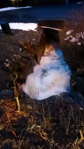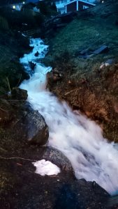 De sneeuw van de afgelopen dagen verdween weer in sneltreinvaart vanwege warmere temperaturen. Dat leidde tot een overvolle kolkende rivier.